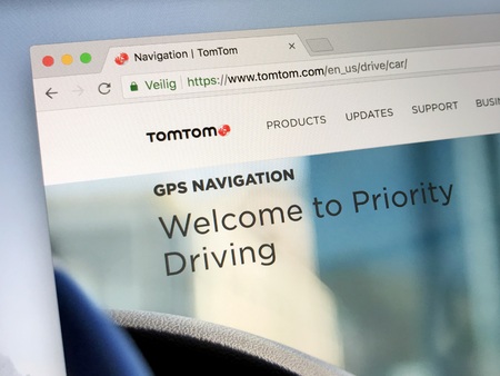 Amsterdam, Netherlands - May 19, 2018: Website of TomTom, a Dutch technology company specialized in GPS technology development for use in automotive, aviation and outdoor consumer products.