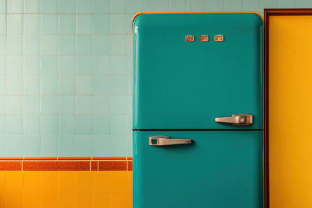 Retro Revival: Embracing Nostalgia with a Vintage Antique Retro Fridge in Vibrant Pastel Hues, Generative AI
