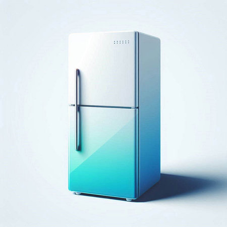 Chest Refrigerator flat design, front view, large capacity theme, 3D render, colored pastel