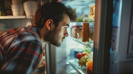 Man Looking Inside a Refrigerator at Night - Perspective from Inside the Fridge