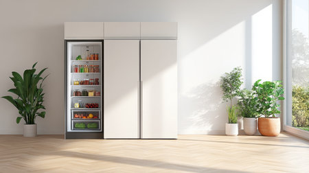 This innovative refrigerator operates independently, tracking food supplies and placing automatic grocery orders for necessary items in a sophisticated kitchen.