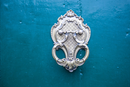 Old Metal Knocker on Green Door in Mdina, Malta. Space for your text