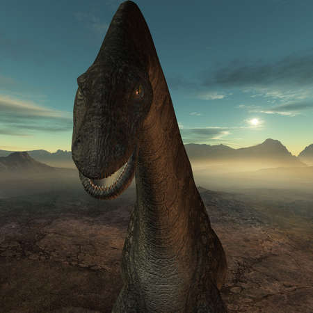 Big model of prehistoric dinosaur in the nature. Realistic scenery.