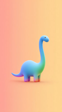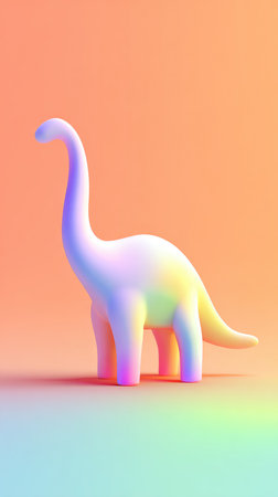 A vibrant, pastel-colored dinosaur statue against a soft gradient backdrop, creating a playful and artistic image.