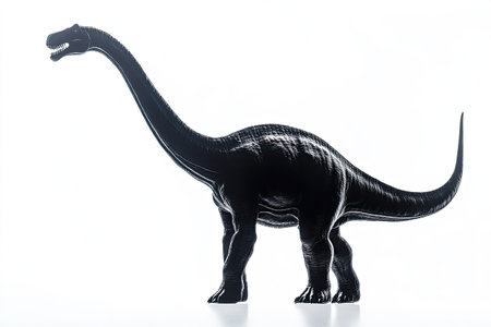 Computer-generated or digitally enhanced illustration of a long-necked, quadrupedal dinosaur, depicted in a stark silhouette against a plain white background. The image emphasizes the dinosaur's form and proportions, showcasing detailed lines and textures. The lighting is focused on highlighting the dinosaur's form, creating a striking visual effect.