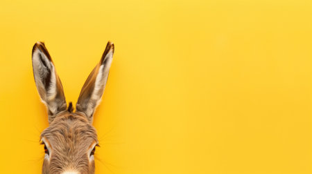 A playful top view of a donkey's ears against a stark yellow background, capturing a whimsical vibe