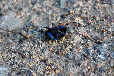 Crimean violet beetle carabus close up on asphalt
