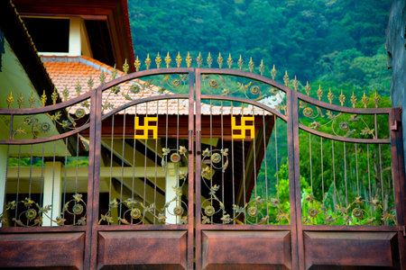Beautiful golden Forged gates design thai temple. Thailand decor.