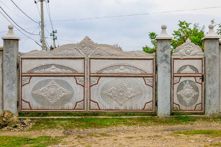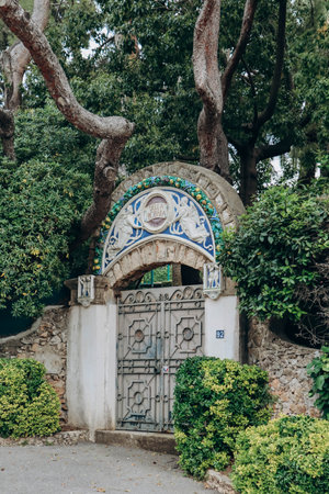 Saint-Jean-Cap-Ferrat, France - 01 June 2023: Beautiful sculptural entrance to the territory of one of the villas