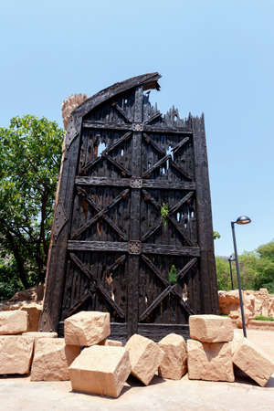 Gigantic door near bridge in famous Lost City in Sun City, South Africa.