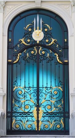 Wrought-iron gates, ornamental forging, forged elements close-up.