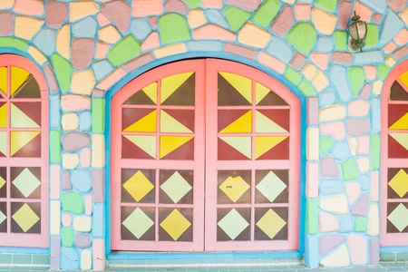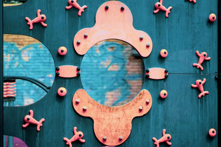 Abstract colorful wooden childrens slide, bright background for modern topics
