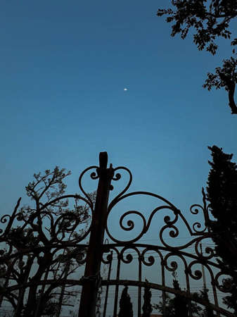 Detail of the gate against the blue sky. Summer Garden, St. Petersburg, Russia