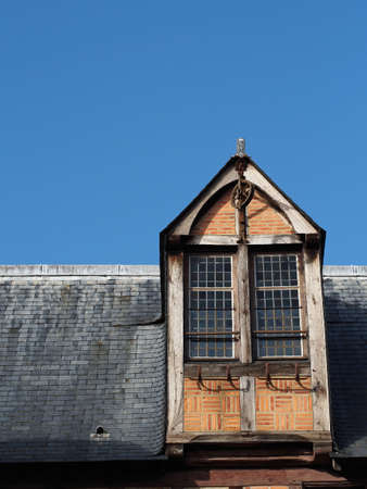 Wood and brick dormer of a XV th century half timber building, Anjou, France