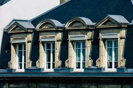 Reims France April 19, 2021 Facade of a building in the streets of Reims during the outbreak hitting France