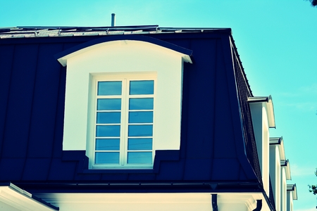 Roof of House and Windows Against Beautiful Deep Blue Sky.