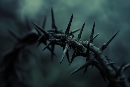 Artistic photo of rose thorns representing the intensity of love, sacrifice, and beauty with a soft gradient backdrop.