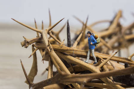 A traveller walks on a thorn crown, forest concept.