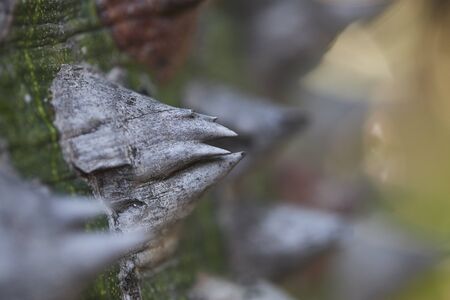 Tropical tree trunk with sharp thorns