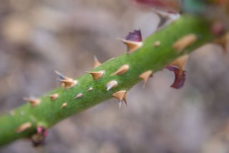 Thorny rose bush stem showing detailed thorns