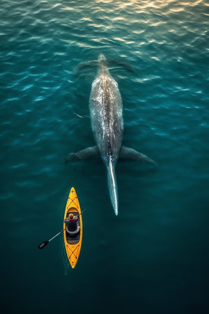Giant whale in the ocean, a symbol of marine biodiversity and rare fauna