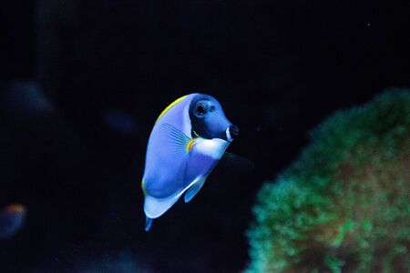Powderblue tang fish Acanthurus leucosternon on a coral reef.