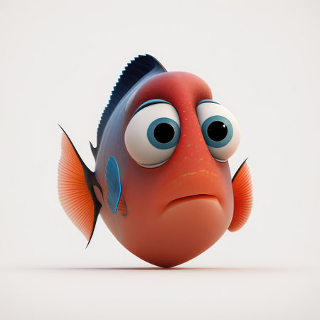 An AI generated illustration of a cute cartoon fish with adorable big eyes on a white background
