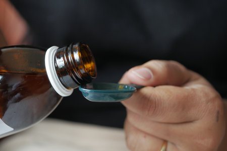 pour liquid medicine on top of spoon
