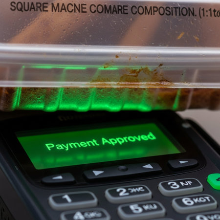 A tightly framed, square-format photograph capturing the instantaneous moment of a digital transacti