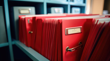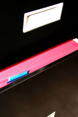 File drawer open showing red files