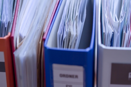 Macro shot of a pile of folders and files with paperwork
