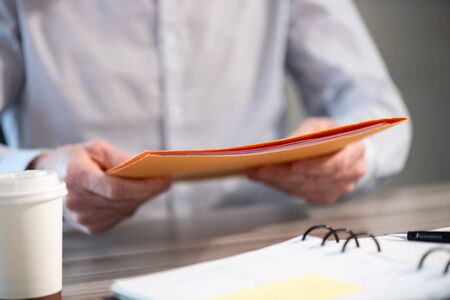 Folder with the documents on a working table