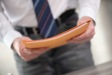 Businessman holding folder with paper documents