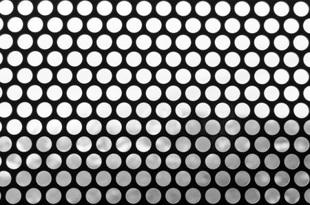 Black and white background of a grid of spotted. Pattern of round holes vintage style. Photo for web site slider.