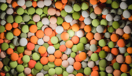 Abstract simple background with beautiful multi-colored circles or balls in flat style like paint bubbles in water. 3d render of particles, colored paper applique. Creative design background