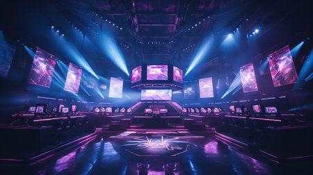 E-Sports Competition Arena with Vibrant Neon Lighting