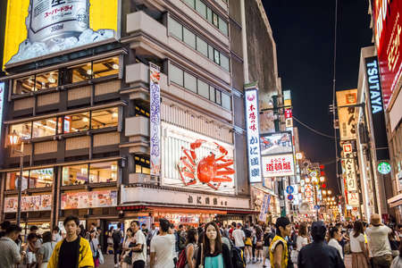 OSAKA, JAPAN - AUGUST 1, 2015 : Nightlife at Dotonbori Canal in Namba district of Osaka, Japan, the famous entertainment area which many restaurants, bars and shops around here.