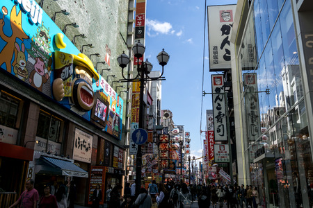 Osaka, Japan - November 30, 2015: Dotonbori entertainment district. Dotonbori is one of the principal tourist destinations in Osaka Japan.