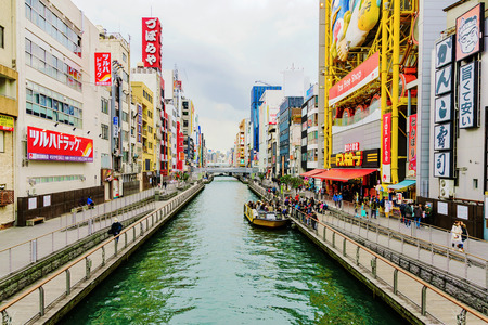 Osaka / Japan - October 1, 2017: Dotonbori Canal in central Osaka, entertainment area and one of the main tourist destinations in Osaka, Japan