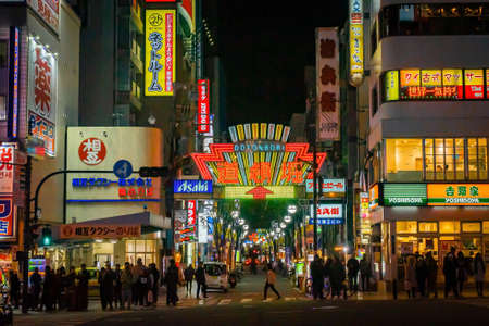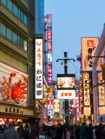 Osaka, Japan- 28 Nov, 2019: People visit Dotonbori street in Osaka, Japan. Dotonbori is the main entertainment area of Osaka.