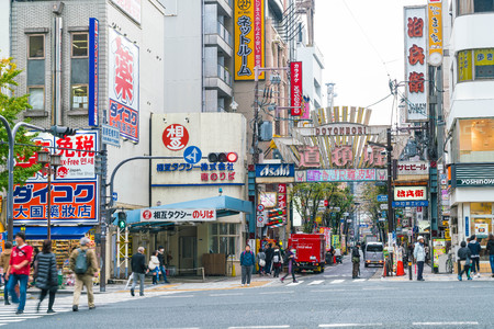 OSAKA, JAPAN - NOV 19 2016: Group of the people walking to shopping at the Osaka night market at Osaka city, Japan