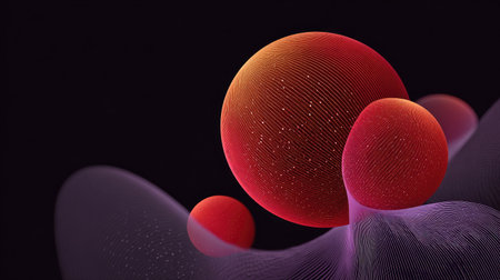 This striking image features vibrant 3D spheres with curved lines set against a dark background, perfect for modern design and artistic concepts in digital media.