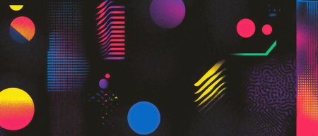 Vibrant abstract design featuring colorful geometric shapes and patterns in dynamic arrangement