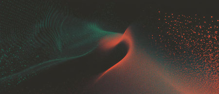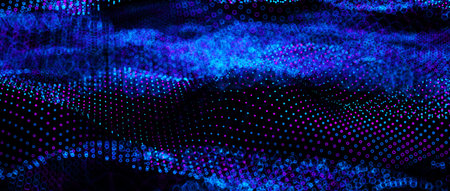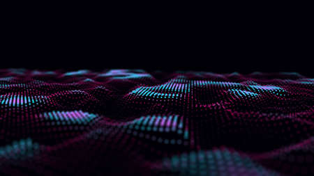 digital technology wave. Dark cyberspace with colored motion dots and lines. Futuristic digital background. Big data analytics. 3d rendering.