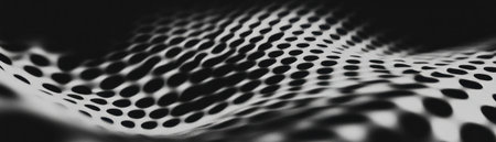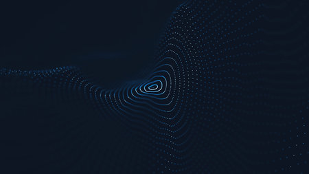 A high-tech abstract wave pattern with glowing blue dots and smooth fluid motion, evoking a futuristic feel.