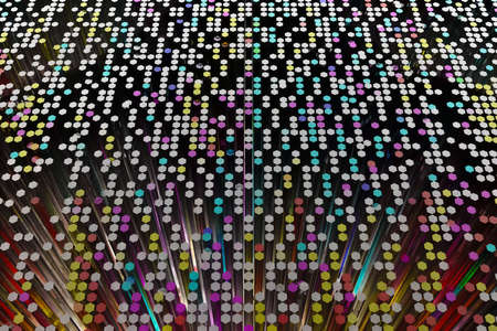 Digital database cyberspace. Decoding algorithms hacked software. Cyber security with moving colored particles. Big data visualization. 3d rendering.