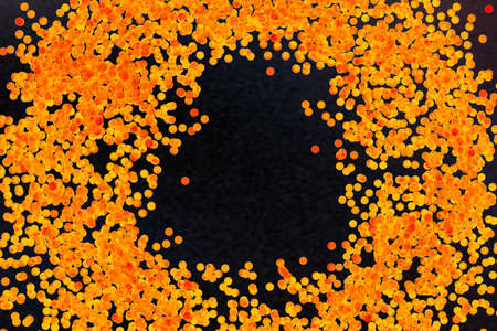 Abstract festive dark black background of multicolored sparkle confetti. Holiday greeting card. Anniversary, birthday concept.