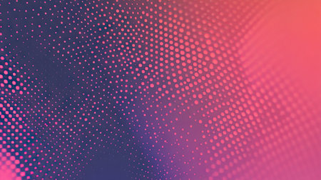 Colorful abstract digital backdrop transitioning from warm pink to cool blue hues with dotted halftone pattern, graphic design, artistic wallpaper, or dynamic website background