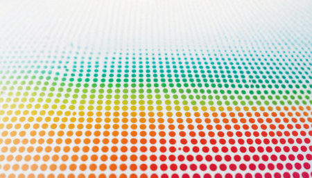 Vibrant dot texture overlay creates a colorful abstract background on dark surface