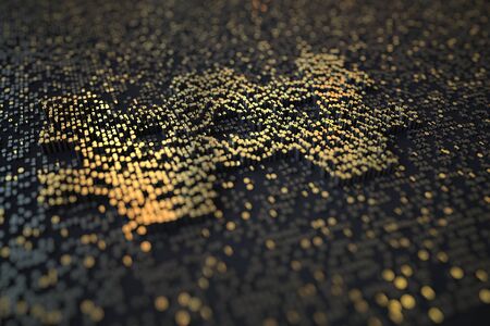 Golden numbers bars compose KRW South Korean won symbol on black background. 3D rendering